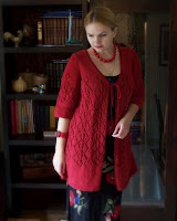 From Vogue Knitting: “Geometry rarely looks so intriguing. Mor starts the equation with two short-row wheels that form this cardigan’s sides. The various shapes that make up the fronts are picked up and knit from the circles, while the back and sleeves are worked separately, put on holders and joined to the rest at the yoke.”